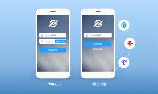 1. 首先,极光认证整合了国内三大运营商的“网关认证”技术,覆盖了国内99.9%以上的用户,并且不区分各省市归属地,仅需要消耗极少的流量,便可在3s之内获得验证结果;