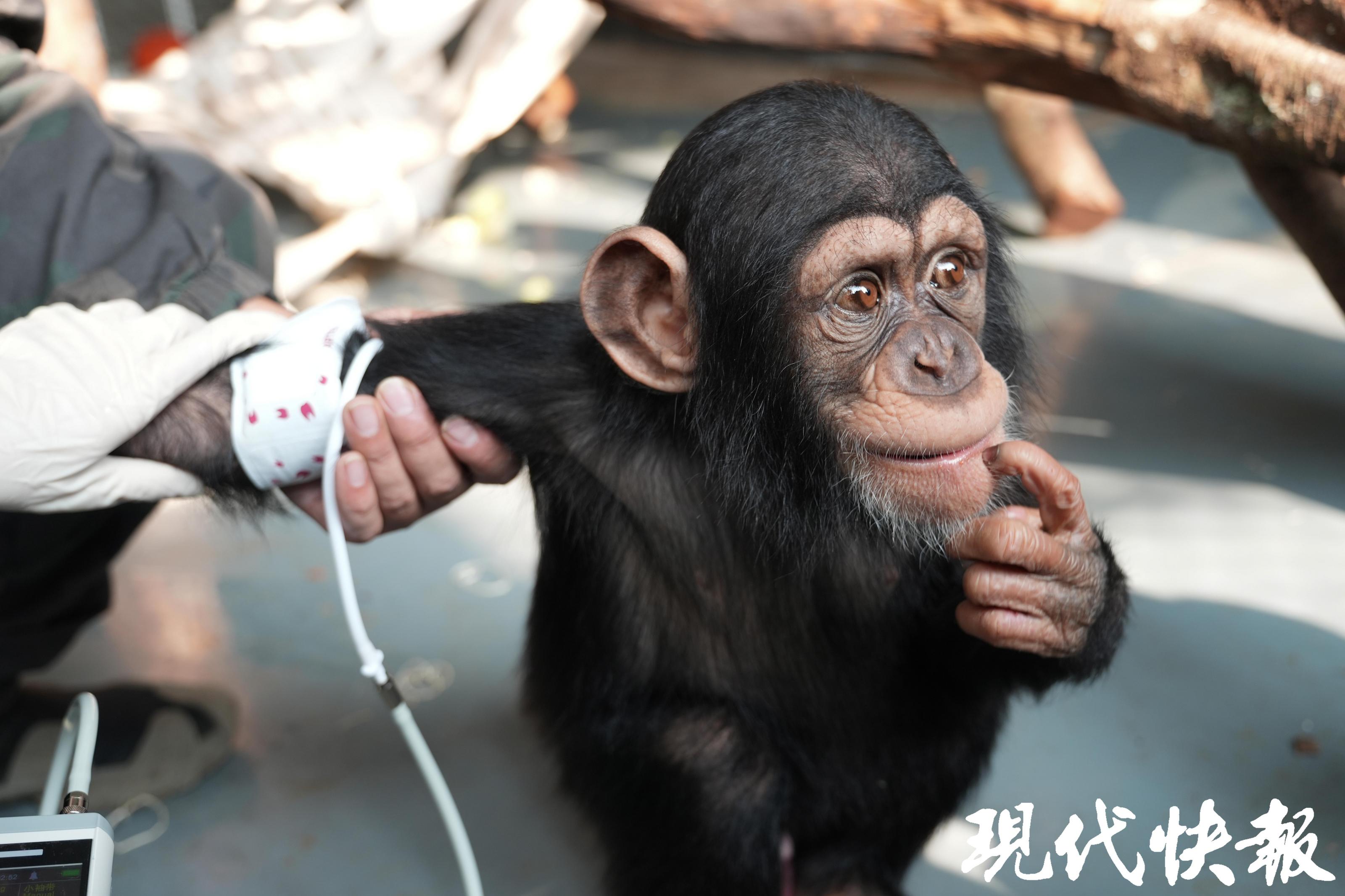 聪明的黑猩猩体检很配合。兽医将特制的血压测量仪轻裹在其肢体上,重视仪器数据每一次跳动,而它对血压仪也是相当淡定。此外,兽医还用听诊器仔细聆听其心跳和呼吸声,不放过任何一丝异常,这一些数据都将为黑猩猩的健康情况描绘出清晰的轮廓。