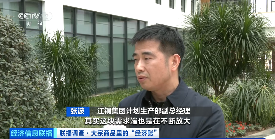 五矿有色金属股份有限公司市场研究经理 左豪恩:在国内的新兴起的产业中,基本每个产业都会用到铜。新(能源汽车)风(电)光(伏)、数据中心,它的发展不能离开铜。因此基于对铜的长期供需基本面的看好,大家对铜价非常有信心的。